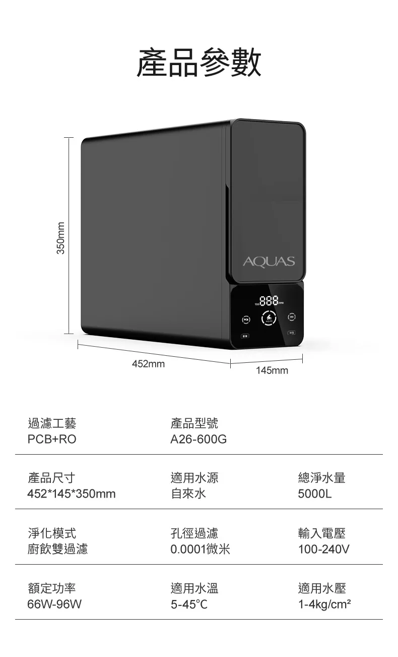 首頁 > 產品分類 > 居家飲水 > 櫥下飲水組合方案 > AQ812+A26-600G 廚下雙溫淨飲組合